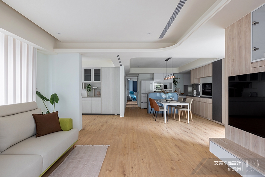 回首跨入室內設計界的歷程,許總監始終堅持以科學理性為基礎,注入人文關懷的溫度。「每場案子都是獨立的生命體,需要細心觀察、用心呵護;無論是長者、幼兒或是毛孩的需求,都值得被同等重視。」艾美幸福提供一連串貼心周到的服務,從硬體設計到軟裝布置,乃至後續家飾採購、收納整理的一站式服務,細膩對待每位客戶重視的細節。