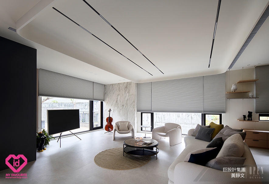 巨設計集團 執行長 黃靜文 於白、灰、木三色基底中,藉由通透落地窗及長虹玻璃,遍灑明亮怡然的自然光線,輔以嵌入式照明與間接燈光相結合的設計,令天光燈火交融一體,成就家宅《漫 漫 映山水》中暖煦和諧的光影層次,受2025 MFID評審團一致好評,光榮獲頒住宅空間類「Winner」獎項!
