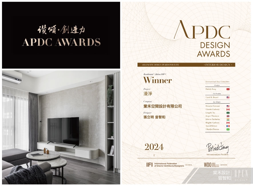 APDC亞太設計中心是室內設計聯合國組織IFI國際室內建築師設計師團體聯盟的全球成員,核心會員由活躍於大中華地區,乃至亞太地區的全球優秀建築師、室內設計師、產品設計師構成。而由該組織發起的APDC AWARDS,自2010年起每年舉行一次,今年已來到第15屆,是亞太地區最重要的獎項之一,曾與全球多個著名設計獎項,並就賽事獲獎作品相互輸送簽訂了友好合作協議。為予以重視實用性的住者便捷生活環境,棠禾設計 設計總監 曾智和 活用便於移動的滑輪餐桌,用餐完畢可將其收入餐邊櫃,釋出寬敞動線,並於空間各處配置大量櫃體,充分滿足收納需求,將小宅《漫淨》化為理想機能住所,贏得本屆賽事評審團的青睞,順利抱回「Winner」佳績!