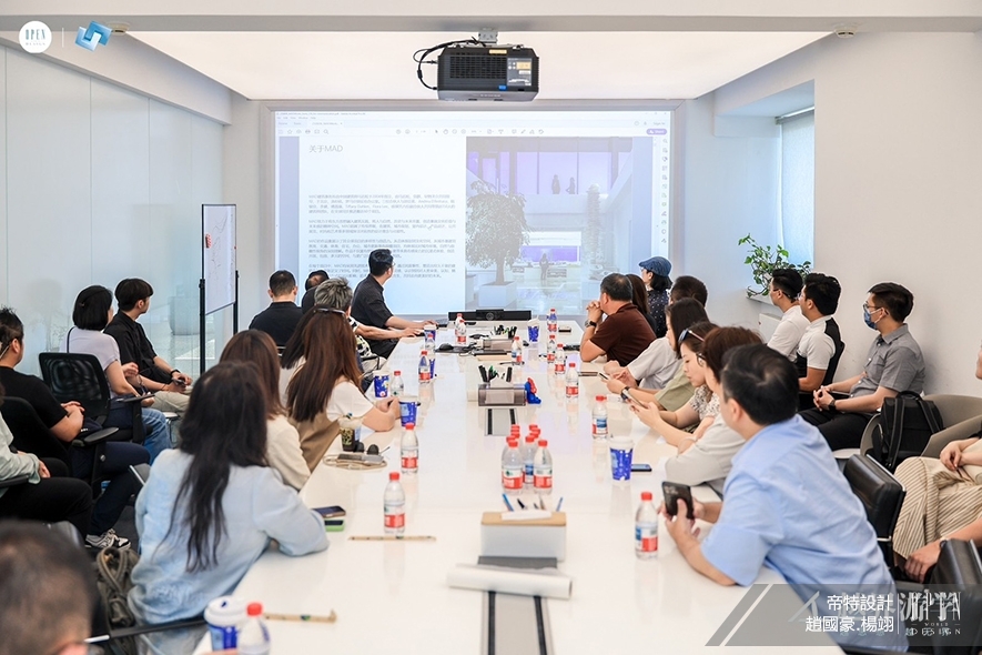 其中,帝特設計的品牌總監趙國豪及設計總監楊翊,在與設計師們探討案例特色後,分享兩人統整的精密剖析:設計團隊在塑造整體氛圍時,延續建物前身廟宇舊址的四合院層次結構,搭配中國傳承已久的正五色「青、赤、黃、白、黑」,讓傳統歷史底蘊的濃厚藝韻自然發散,又以貼近現今生活需求的各式燈光、收納、接客用的智能配備,將時間和空間的邊界模糊,呈現美感機能兼備的傑出創作。跨越時代的精美設計,刺激考察團對於在地文化脈絡和室內設計結合的空間詮釋發想,也予以眾人日後項目規劃時的嶄新思維。