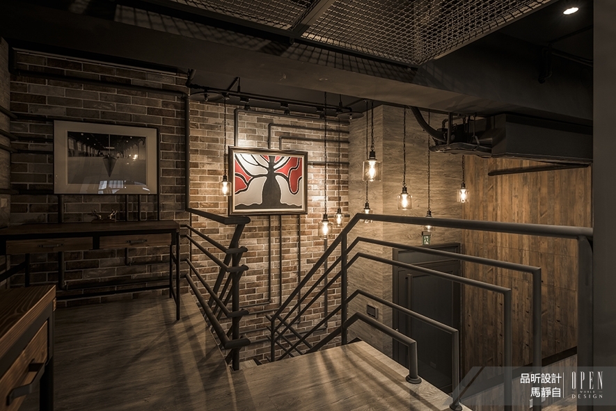 ▲順延黑鐵樓梯循徑而上,途經的仿文化石磚牆、金屬管線、壁爐造型,無一不發散醇厚的懷舊藝韻;鄰接暖爐的原木桌特別定位為洽談兼休憩區,供內部人員放鬆憩息,也讓員工與主管談話時不必進入辦公室,雙方得以輕鬆舒適的心情交談。