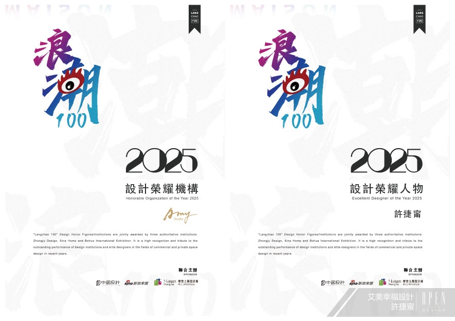艾美幸福設計 設計總監 許捷甯 懷抱熱誠真摯的服務態度,細心傾聽業主需求,用心劃設所有託付於己的空間,讓設計不單止於裝飾場域,更是以貼心全面的互動交流,在打造豐富每位顧客心靈的夢想家園;滿盈人情溫度的溫馨品牌,於許總監的帶領之下,接連斬獲美國MUSE Design Award、TITAN PROPERTY AWARDS、中國HCA高定家居設計獎等多項國際競賽獎項,因而贏獲2025浪潮100榮耀設計獎中的「設計榮耀機構」、及「設計榮耀人物」等兩項大獎,令艾美幸福團隊的溫情幸福美學遠播海外!