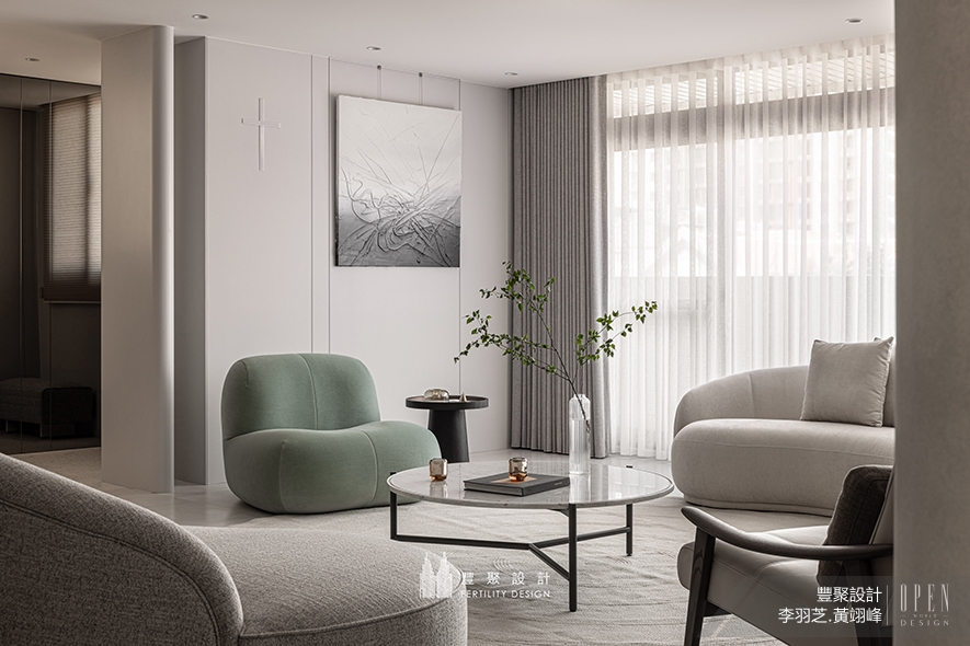客廳&午茶區——流弧曲面開展綿延觀感 圓柔景緻靜述家族美滿