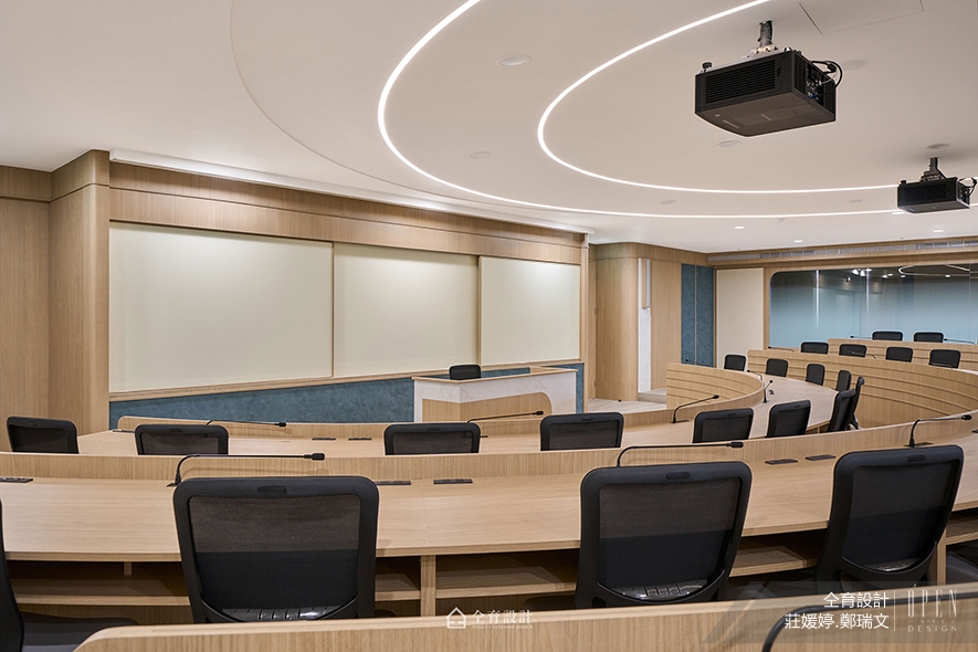 仝育設計莊媛婷與鄭瑞文總監 ,帶領設計團隊完成這次空間改造,以師生的使用體驗為首要考量,在確保教學機能與舒適性的基礎上,注入細膩而溫暖的設計巧思。溫潤舒適的色彩搭配、流暢柔和的線條語彙,創造出明快宜人的講堂氛圍,讓學習場域更安全與實用,不僅激發學術靈感,更回應了設計品牌一貫的信念──透過設計療癒人心,讓校園生活更加幸福。