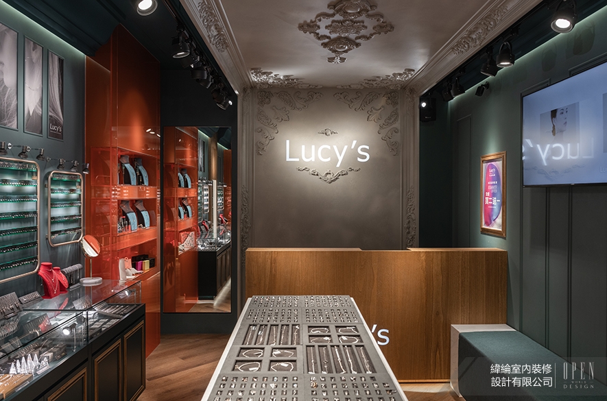 本案作為高品質飾品零售空間,主要面向追求質感與時尚的女性客群,緯綸設計 設計總監 華葦軒 遂以「低調奢華」為主軸,透過歐式雕花天花板與現代精品陳列手法的融合,並運用深藍綠與灰白為主調,鋪陳橘紅色彩作為視覺亮點,再搭配木質、霧面元素作為緩衝,營造沉穩中帶有驚喜的視覺層次,精準傳達品牌「可親近的精品」定位,令其在市中心繁華商圈的熱鬧街廓中脫穎而出,彰顯設計團隊對當代商業空間與品牌價值的深刻掌握。