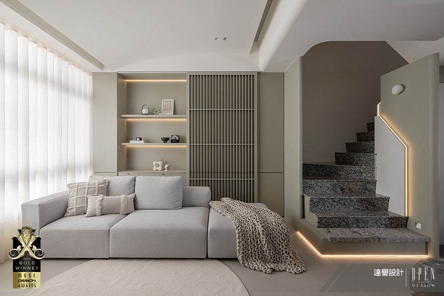 美國MUSE Design Awards致力於發掘全球設計謬思,涵蓋建築、室內、時尚等領域。2025年下半季共吸引來自124個國家、超過10萬件作品參賽,由200多位專業評審嚴格遴選,可謂最具影響力的國際獎項之一。達譽設計團隊 堅守「以人為本、環境友善」的創作初心,從細微的牆面熱感應燈為長輩與幼童點亮安全路徑,到隱藏式收納最大化家庭的開闊感受;從精選低甲醛環保建材守護居住安全,到運用LED與自然光源,打造節能健康宅《暮光微嶼》,每一處設計決策皆高度契合大賽「發掘兼具創新精神與人文關懷的設計」宗旨,喜獲2025 MUSE Design Awards的金獎佳績!