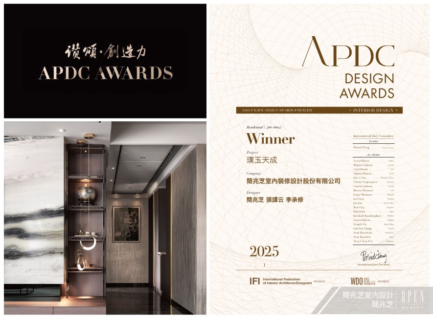 APDC亞太設計中心是室內設計聯合國組織IFI(國際室內建築師設計師團體聯盟)的全球成員。由該組織發起的APDC AWARDS,自2010年起每年舉行一次,來到第16屆的今年,依舊持續秉持「讚頌設計之創造力」的核心,致力將創新的優秀作品推廣至國際舞臺。本屆賽事,簡兆芝室內設計 主持設計師 簡兆芝 活用兩戶合併的格局優勢,輔搭案場優良的天然採光,將一戶作為無隔間的開放式公領域,給予一家人寬廣明亮的生活空間;同時,亦透過全室無高低落差的通用設計,以及嚴選低VOC、耐用易打理的優質建材,打造安全雋永的家宅《璞玉天成》,贏得賽事「Winner」榮光,為品牌榮譽再添一筆佳績!
