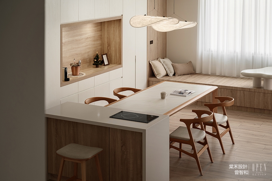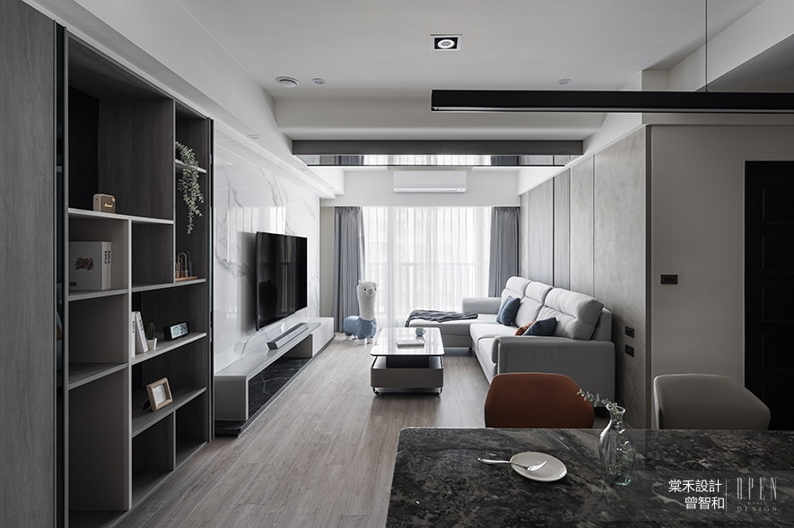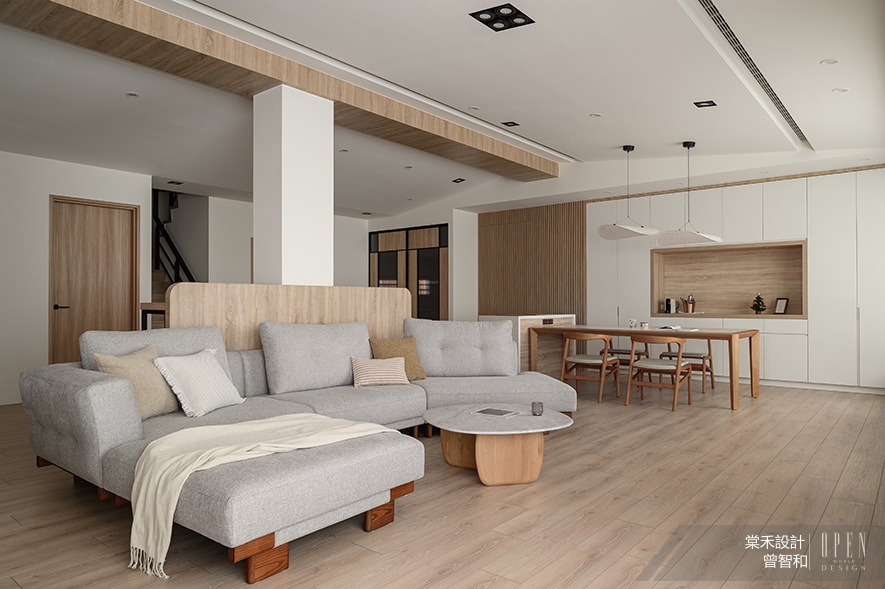 或許是經歷那段忙亂又深刻的日子,如今當總監面對家中有孩子的業主時,那股「父母心」自然就流露在設計細節中,像在公共空間增加弧角收邊、選擇安全友善的材質、刻意放大客廳的活動範圍,以至於連茶几的尺寸、決定擺放與否,都會以孩子的未來動線為前提。「我自己也知道,小朋友在家就是一直跑、一直跳,難免撞來撞去。能讓父母少擔心一點,當然是最好的。」