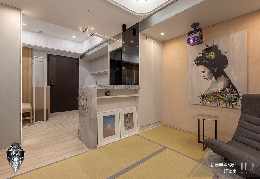 美國 MUSE Design Awards致力於發掘全球設計繆思,涵蓋建築、室內、時尚等領域。2026年共吸引來自124國、超過十萬件作品參賽,由200多位專業評審嚴格遴選,為國際設計界的重要指標。在作為設計師自用示範宅兼辦事處的《光落之境》中,艾美幸福設計 設計總監 許捷甯 活用大面積長虹玻璃、鏡面及大理石等建材,透過其反射特性延展空間縱深感,配合搭載多樣彈性功能的吧檯、榻榻米區,以實際作品達至宣傳品牌可將小宅化作視野開闊、機能充沛場域的效果;貼合示範宅和辦事處定位的匠心設計,亦緊扣賽事著重創新巧思的核心理念,成功贏得「銀獎」佳績!