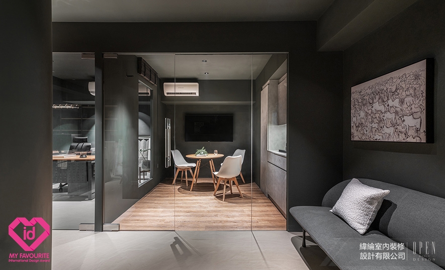 My Favourite International Design Award(MFID)作為馬來西亞首個且唯一的國際設計獎項,2026年由橫跨11國16位專業評審,以含括設計理念、美學表現力、功能性、永續實踐、文化脈絡等五大標準嚴格遴選,致力於發掘並推廣兼具精湛工藝與前瞻創意的優秀作品。為傳遞「設計即溝通」的品牌信念,緯綸設計 設計總監 華葦軒 於自身辦公空間《墨隱》中,以深沉墨色為基底,巧妙混搭溫潤木質與冷冽金屬,鋪展內斂而有光的沉穩氛圍;格局上採前、中、後三段式佈局,搭配玻璃隔間導引日光深入室內,兼顧通透視野與動線秩序,打造專注與對話並行的理想工作場域,精準呼應賽事對「設計創新與空間機能整合」的評選標準,成功摘下2026 MFID Awards商業類別「Winner」榮耀!